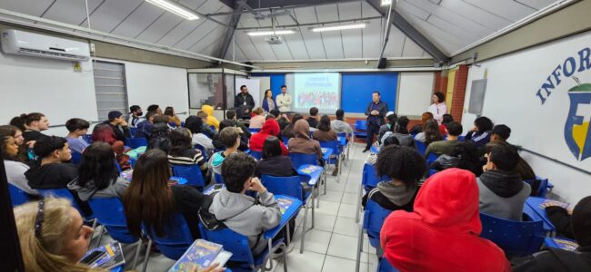 Os alunos do Ensino Fundamental e do Ensino Médio participaram ativamente das discussões, que tiveram como objetivo promover a conscientização e destacar a importância dos direitos no ambiente de trabalho.