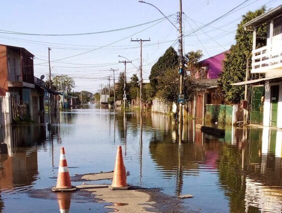 Após o forte temporal que atingiu a Região Metropolitana na madrugada de sábado (18), as águas do rio Gravataí, e consequentemente do Arroio Feijó, voltaram a subir e invadiram as ruas do bairro Americana, principalmente a Anita Garibaldi e Marquês do Pombal.