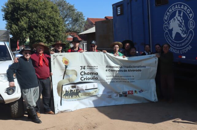 Um grupo de cavaleiros, membros da Associação Tradicionalista e Campeira de Alvorada, partiu na manhã desta terça-feira (29) para uma viagem de 206 km. O objetivo é buscar uma centelha da Chama Crioula no município de Cristal.