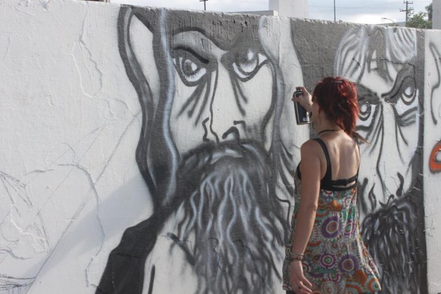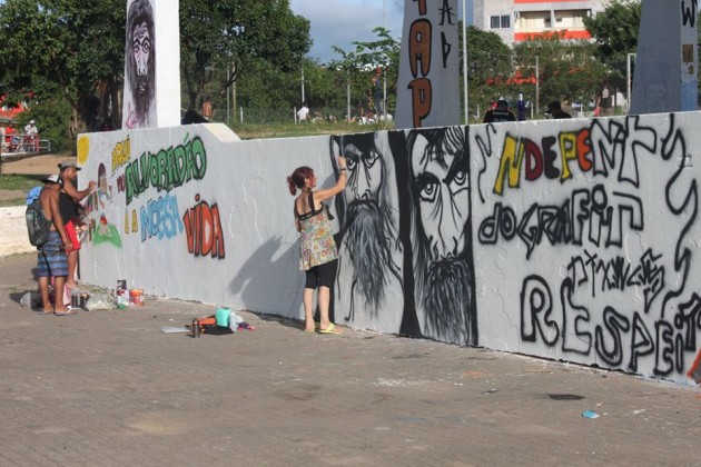 Após polêmica, grafiteiros pintam nova arte em palco da 48