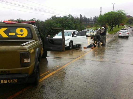 Policiais Militares do Grupamento de Operações com Cães do 17º BPM conseguiram interceptar o veículo Honda na avenida Centenário.