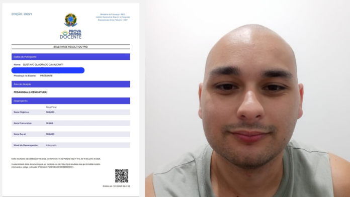 Gustavo Quadrado Cavalcanti alcançou nota máxima na Prova Nacional Docente (PND). Atendente de educação infantil da rede municipal de Alvorada, ele contou que iniciou a preparação algumas semanas antes da aplicação da prova, cuja nota tem validade de três anos.