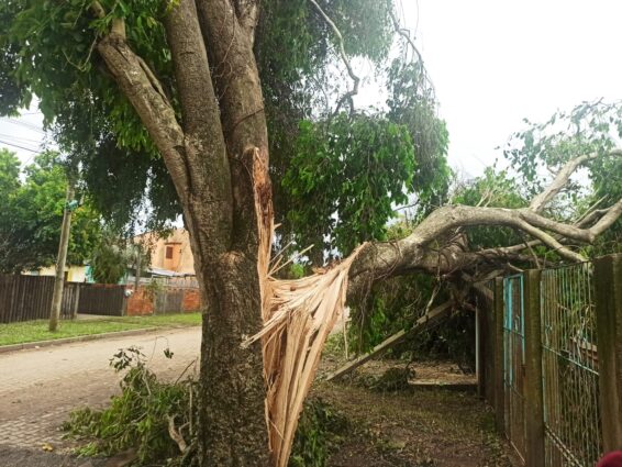O temporal que atingiu Alvorada na noite de terça-feira (16) causou estragos em diversos pontos da cidade. O vento forte e chuva intensa provocaram destelhamentos, quedas de árvores e postes, alagamento, além da falta de energia elétrica e do abastecimento de água.