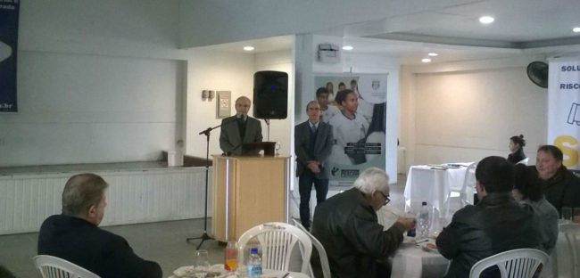 O palestrante foi Sidney Flaviano Machado de Souza, assessor da Presidência do Badesul na área de Captação de Projetos, acompanhado de Ildo Meneguetti, superintendente de Negócios Empresariais do Banco de Desenvolvimento.
