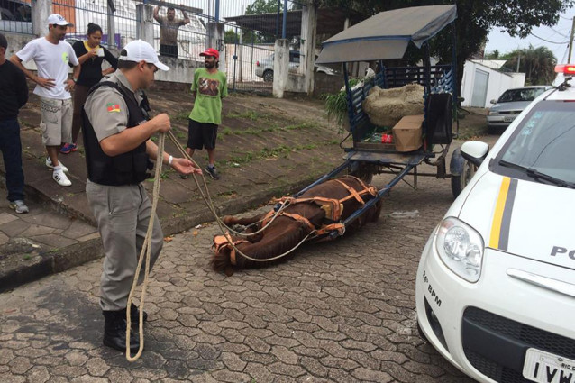 Um carroceiro foi flagrado pela Brigada Militar maltratando uma égua na rua México, no bairro Passo do Feijó, por volta das 10h desta terça-feira (3).