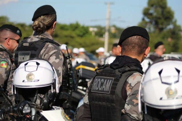 O secretário Estadual da Segurança Pública, Sandro Caron, e o comandante-geral da BM, coronel Cláudio dos Santos Feoli, reuniram o efetivo que contou com militares dos Batalhões de Operações Especiais (BOE), Aéreo, Ambiental, Rodoviário e de Choque, além do policiamento ostensivo.