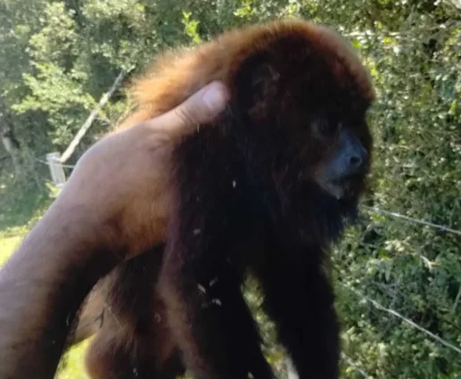 Um macaco bugio foi encontrado por moradores do Distrito Industrial na terça-feira (21). O animal estava debilitado e desidratado e, provavelmente, encostou em fiação elétrica, sendo vítima de choque.
