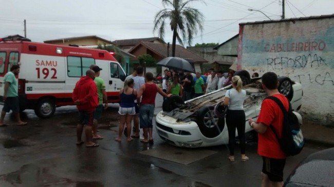 Um acidente de trânsito impressionou quem passava pelo bairro Sumaré neste domingo (31). Dois veículos se chocaram na avenida Itararé, fazendo um dos carros capotar e atingir um pedestre que estava na calçada. Os motoristas não se feriram, mas a pessoa atropelada segue em estado grave no Hospital de Alvorada.
