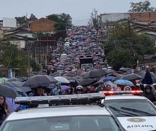 A chuva que insistiu em cair durante a manhã de quinta-feira (12), não impediu que centenas de pessoas, vindas de diversos pontos de Alvorada e também da Região Metropolitana participassem da 28ª Procissão de Nossa Senhora Aparecida.
