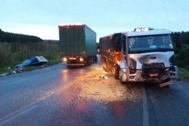 Um carro e um caminhão com placas do Rio Grande do Sul se envolveram em um acidente nesta segunda-feira (25). A colisão deixou sete mortos no primeiro quilômetro da BR 153, que faz a divisa entre Santa Catarina e Paraná.