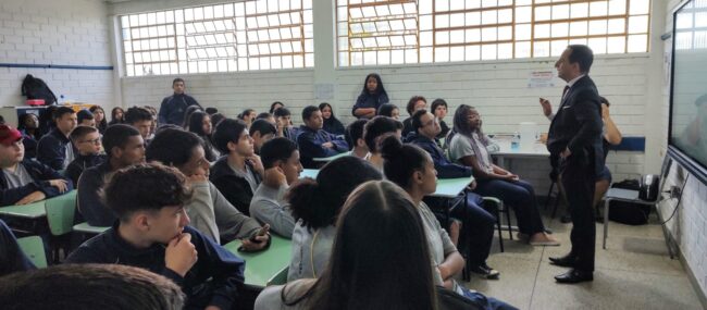 O palestrante é o advogado Valmor de Freitas Jr, julgador do Tribunal de Ética e Disciplina da OAB/RS e membro da OAB Alvorada. “Me sinto muito feliz pela oportunidade de continuar palestrando sobre um tema tão importante, no programa OAB vai à escola, falar sobre fake news, especialmente, acredito que assunto precisa ser exaustivamente debatido. E mais do que falar sob os aspectos legais e consequências jurídicas, precisamos enaltecer valores. Formatei uma palestra que fala claro, de direitos e deveres. Mas a todo o momento, falamos de empatia e respeito. Premissas básicas como não fazer para o outro na rede social, o que não queremos que façam para gente. Entender que nosso direito pode terminar quando começar o do outro. Coisas que ouvimos desde cedo, mas que certamente em um olhar prático, e falado por alguém de fora da escola, pode ajudar a despertar um novo sentido. Penso que é desta forma que desenvolvemos uma comunidade melhor: cada um dando a sua contribuição e fazendo a sua parte”, declarou o palestrante em publicação nas redes sociais da Prefeitura de Alvorada.