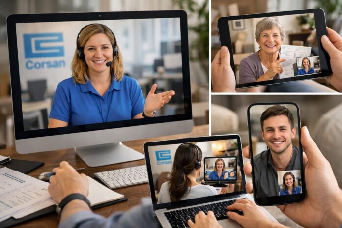 Para acessar o serviço, o cliente deve entrar no site corsan.com.br e clicar no ícone “Videochamada”. É possível optar pelo atendimento imediato, clicando em “entrar na fila”, ou agendar o atendimento, escolhendo a data e horário mais convenientes. É necessário fornecer um e-mail e permitir o uso da câmera e do microfone, possibilitando que o atendimento ocorra ao vivo.