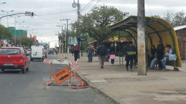 O local está sinalizado, pelo menos desde a noite de terça-feira (13). Contudo com o forte vento desta quarta-feira a sinalização cai constantemente, o que amplia o risco de acidente, tanto de veículos que circulam na região, quando para pedestres e passageiros que realizam embarque e desembarque dos coletivos.