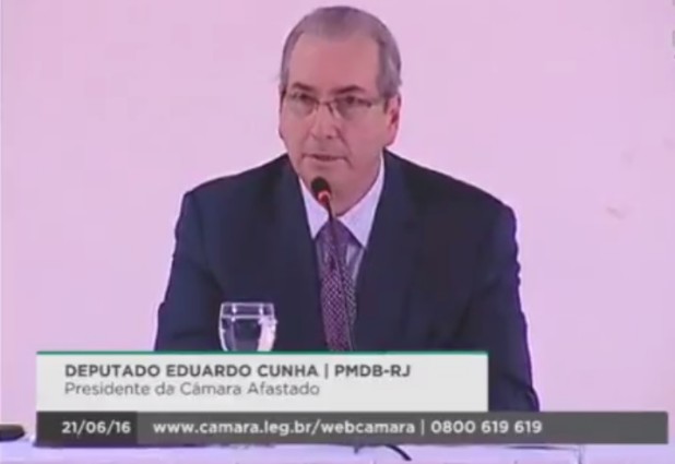 Com o mandato parlamentar suspenso desde o dia 5 de maio pelo STF, Cunha está proibido de circular pelos corredores da Câmara há um mês e meio – por isso, a coletiva precisou ser marcada fora da Casa. Ele é investigado por corrupção e lavagem de dinheiro.