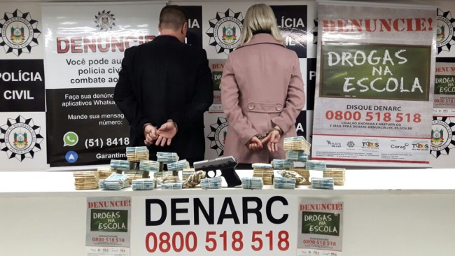 A Delegacia de Investigação do Narcotráfico (Denarc) realizou sua maior apreensão de dinheiro em espécie nesta quinta-feira (28). Um casal foi preso por envolvimento com narcotráfico e porte ilegal de arma de fogo. Os dois fariam parte de organizações criminosas que atuavam na Região Metropolitana.