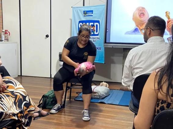 Além da parte teórica, o encontro envolveu exercícios como a desobstrução de vias aéreas, a posição lateral de segurança e a atuação em caso de uma parada cardiorrespiratória. O curso foi ministrado pela diretora do SAMU, Sabrina Lacerda.