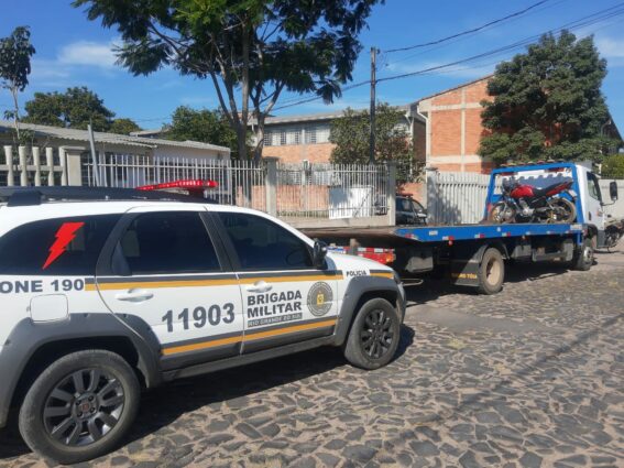 Após abordagem policial, na consulta de dados, foi constatado que a motocicleta estava em ocorrência de furto/roubo desde sábado (09).