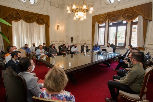 Prefeitos membros da Associação dos Municípios da Região Metropolitana de Porto Alegre (Granpal) estiveram reunidos com o governador Eduardo Leite e o secretário-chefe da Casa Civil, Artur Lemos Júnior, na terça-feira (25), para tratar sobre a seca do Rio Gravataí e as dificuldades de abastecimento de água na região durante o período de estiagem.