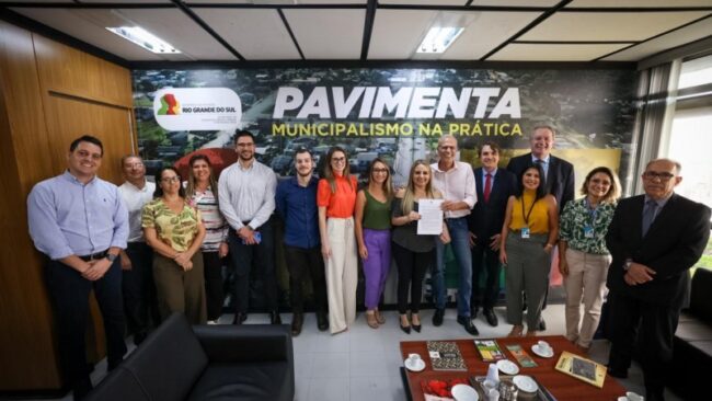 Mais uma etapa para a execução do projeto da Estrada Caminho do Meio foi concluída nesta quinta-feira (11), na Secretaria Estadual de Desenvolvimento Urbano e Metropolitano (Sedur). O secretário Rafael Mallmann e a secretária de Planejamento, Governança e Gestão, Danielle Calazans, estiveram reunidos com representantes da Caixa Econômica Federal para a assinatura do termo de contrato, que possibilitará a prestação de serviços de assistência técnica, análise e assessoria ao projeto de qualificação e melhorias da estrada.