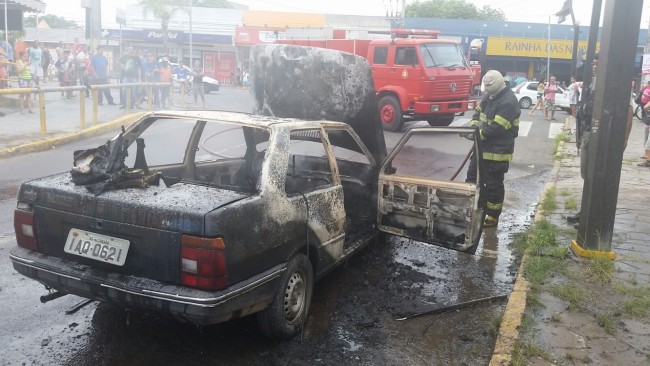 Um carro pegou fogo nesta terça-feira (16) na rua Caetano Dihl, quase esquina com a avenida Presidente Getúlio Vargas. O incêndio iniciou e foi controlado pelos bombeiros próximo das 13h. A mulher que estava conduzindo conseguiu sair a tempo. Ninguém se feriu.