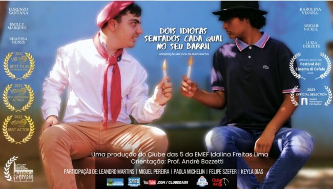 O curta-metragem “Dois Idiotas Sentados Cada Qual no Seu Barril”, produzido pelos alunos participantes do Clube das 5, conquistou sua terceira seleção em festivais internacionais.
