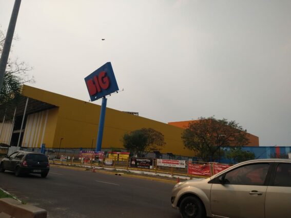 Quem acessou o Big Alvorada na manhã desta sexta-feira (20), ou passou em frente ao local, se deparou com um enorme caminhão que fazia a manutenção em uma placa do hipermercado, danificada devido aos fortes ventos que atingiram a região.