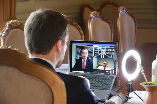Uma vídeo conferência realizada nesta segunda-feira (12) entre o Governo do Estado e o Supremo Tribunal Federal (STF) teve como objetivo reafirmar a essencialidade da educação e do retorno imediato às aulas da Educação Infantil (creches e escolinhas) e dos 1º e 2º anos do Ensino Fundamental no RS. Participaram do encontro o governador Eduardo Leite, o procurador-geral do Estado, Eduardo Cunha da Costa, o procurador-geral de Justiça, Fabiano Dallazen, e o ministro do Supremo Tribunal Federal (STF), Kassio Nunes Marques.