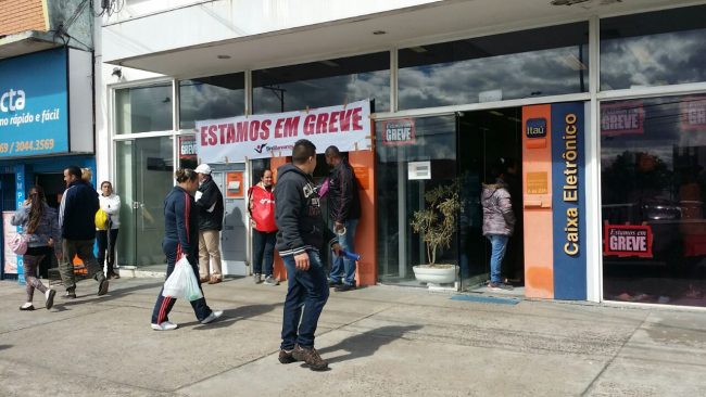 Segue pelo terceiro dia a greve dos bancários em diversos estados brasileiros, com adesão acima do esperado pelo Sindibancários. Em Alvorada as agências estão fechadas desde a terça-feira (6), primeiro dia do movimento nacional e o que se vê é a grande procura pelos caixas eletrônicos, com longas filas inclusive à noite, e movimento intenso nas lotéricas.