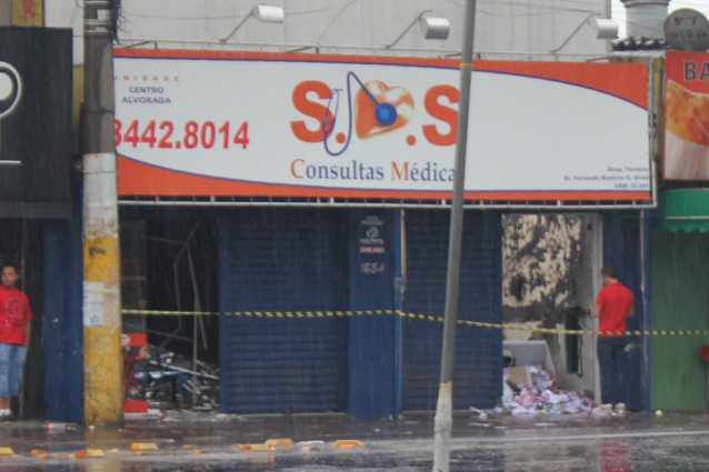 Um incêndio de grandes proporções atingiu a clínica S.O.S. Consultas Médicas, localizada na altura da parada 46 da avenida Presidente Getúlio Vargas, no bairro Bela Vista.