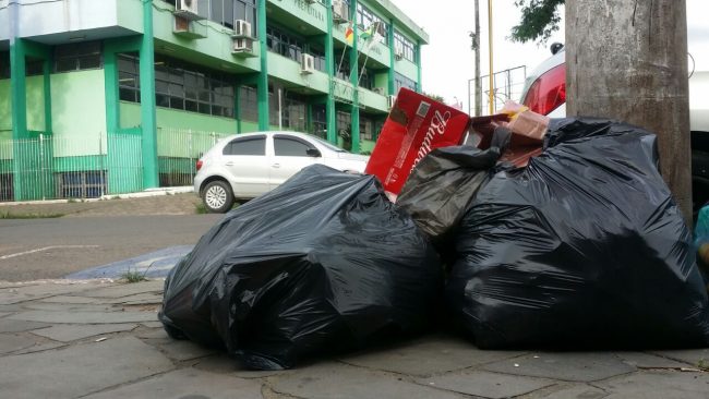 Uma comissão de funcionários da empresa contratada pela administração municipal para realizar a coleta de lixo fez uma manifestação no saguão da Prefeitura de Alvorada na manhã desta quarta-feira (18).