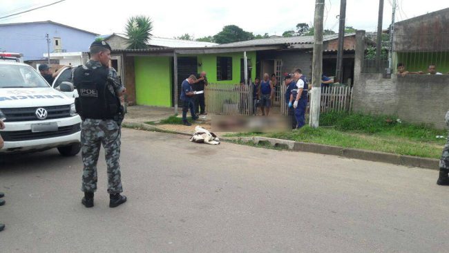 Os dois estariam em frente ao imóvel quando dois carros passaram atirando. No local a Polícia encontrou diversas cápsulas de calibre .40.