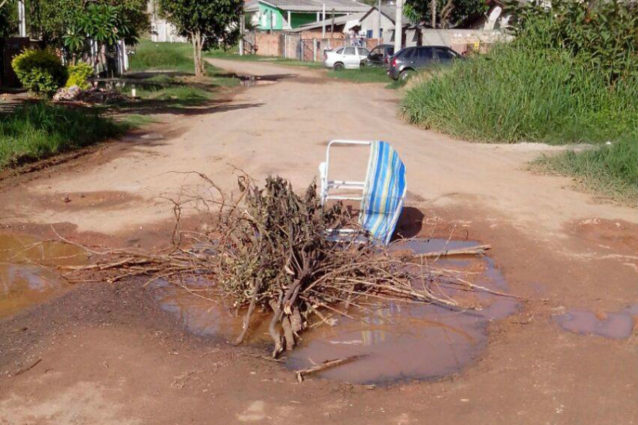 Após os moradores ajudarem o motorista a se livrar do atoleiro, foi colocada uma cadeira de praia no local, para sinalizar o perigo aos motoristas.