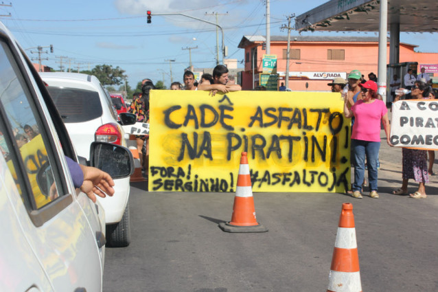 O protesto ocorre em virtude da paralisação das obras de duplicação da principal avenida do bairro.