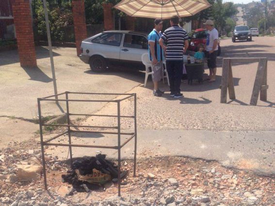 Mais uma vez os moradores da rua Elmira Pereira Silveira, Jardim Algarve, fazem um protesto bem humorado enquanto aguardam providencias da Prefeitura para a trafegabilidade da via.