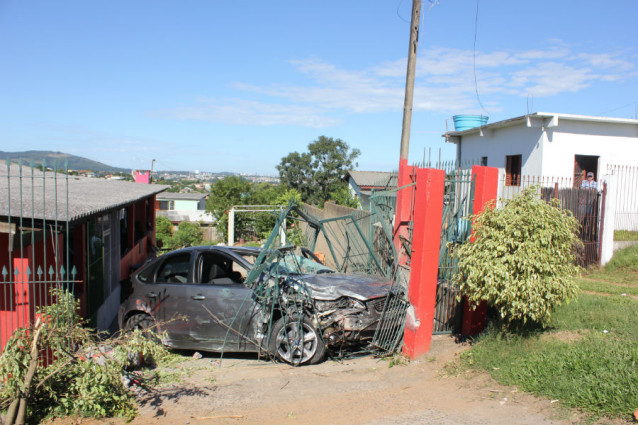 Um carro invadiu o pátio de uma residência na avenida Dezessete de Setembro, bairro Jardim Aparecida, por volta das 7h30min desta quinta-feira (25).