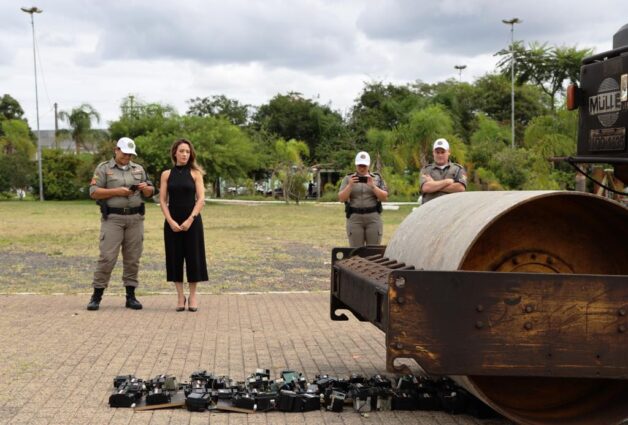 Um rolo compressor cedido pela Prefeitura quebrou 63 peças avaliadas em R$ 2 mil cada. Os objetos são oriundos de apreensões, principalmente envolvendo a prática da contravenção penal de jogo de azar e do crime de lavagem de dinheiro.