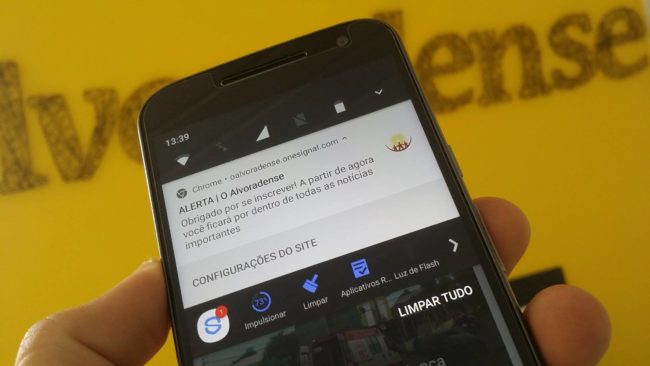 - Ao acessar o site do jornal O Alvoradense pelo celular Android um aviso vai pedir para você permitir que os alertas sejam enviados. Clique no botão azul Permitir e você já estará inscrito para receber os alertas.