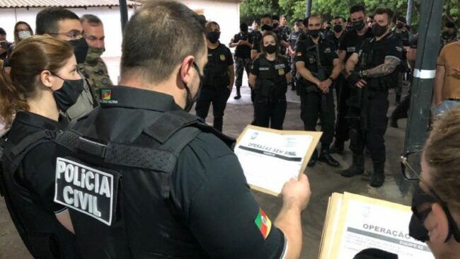 Estão sendo cumpridas 43 ordens judiciais, sendo 39 mandados de busca e apreensão e três mandados de prisão preventiva em 12 cidades gaúchas e em três estabelecimentos prisionais. Além de Alvorada, também são alvos da ação Nova Santa Rita, Canoas, Porto Alegre, Esteio, Cachoeirinha, Viamão, Sapucaia do Sul, Gravataí, Guaíba, São Leopoldo e Tapes.