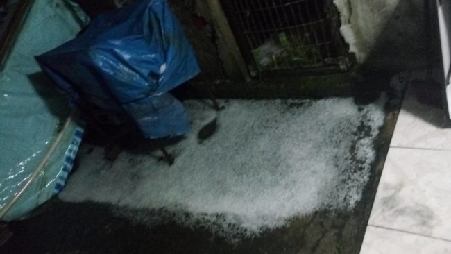 Pela segunda vez na semana, a queda de granizo atingiu diversos bairros de Alvorada durante à noite desta quarta-feira (13).