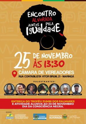 Será durante o encontro Alvorada Juntos Pela Igualdade, realizado pela Secretaria Municipal do Trabalho, Assistência Social e Cidadania, através da Coordenadoria da Igualdade Racial em parceria com a Câmara de Vereadores, com a entrega da 1ª edição do Troféu Zumbi dos Palmares.