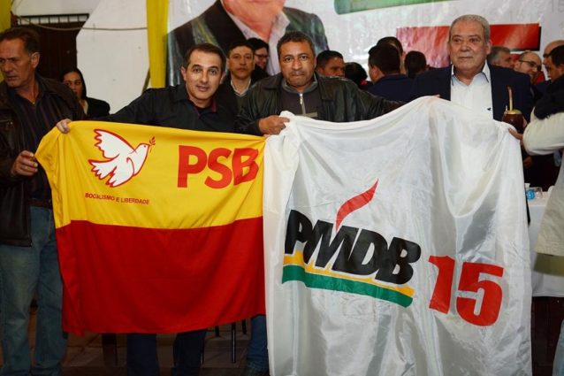 O PMDB realizou convenção na noite de quarta-feira (3), quando homologou a candidatura dos vereadores Arno Appolo do Amaral a prefeito e Vanio Presa a vice, além dos 26 candidatos a vereador. A noite ainda confirmou a coligação com o PSB, que esteve presente com seu presidente Vladimir Massa da Silva, vereador Reginaldo Rocha e demais candidatos a Câmara. O evento recebeu, ainda, a visita dos vereadores Neto Girelli (PTB) e Preto (PDT) e dos candidatos a prefeito e vice do PDT, Valter Slayfer e José Carlos Gomes, que inclusive fez parte da mesa e falou ao microfone.