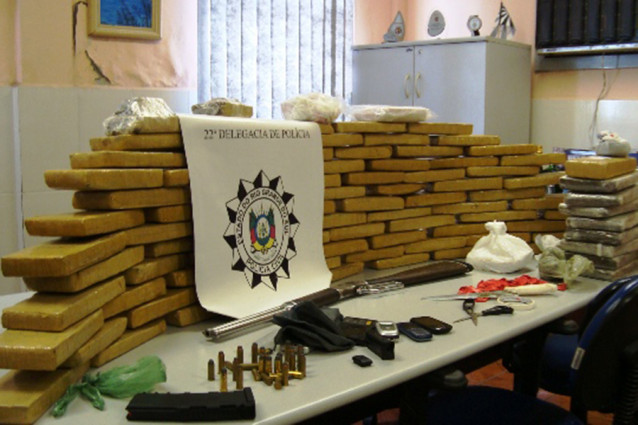 Nas residências foram localizados 80 quilos de maconha, 1,7 quilos de crack, uma espingarda Rossi calibre 44-40, um carregador de fuzil 556, um carregador de pistola 9mm, munição 44-40, balança de precisão, celulares, material para embalar as drogas e um veículo Fox utilizado para distribuição.