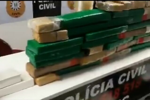 Foram 30kg de maconha, mais de 11kg de cocaína, 220 gramas de crack, duas balanças de precisão, um veículo, duas pistolas calibre .380 e quatro carregadores.