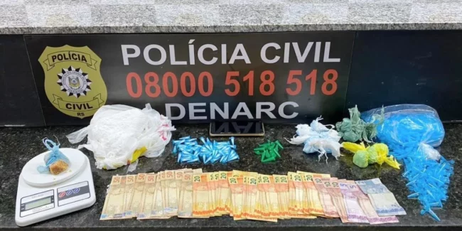 Uma ação do Departamento Estadual de Investigações do Narcotráfico (Denarc) da Polícia Civil prendeu um gerente do tráfico de drogas. Os agentes apreenderam centenas de pinos vazios para acondicionamento da cocaína, quase um quilo de maconha, 50 gramas de crack, uma balança de precisão e mais de R$ 1,4 mil em dinheiro.