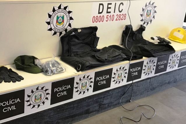 Em Alvorada foi preso um dos líderes da organização, de 50 anos, e com ele coletes balísticos pertencentes a agências bancárias roubadas, coldre, simulacro de pistola, touca ninja, um veículo, diversos celulares.
