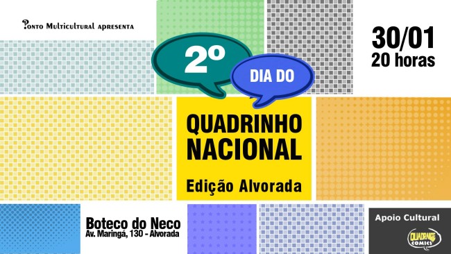 O 2º Dia do Quadrinho Nacional acontece neste sábado (30) no bairro Maringá. O evento está marcado para as 20h no Boteco do Neco (avenida Maringá, 130).