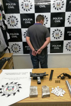 Após a ação policial, o investigado foi preso e também foram apreendidos no local dois tijolos de maconha, porções da mesma droga embaladas para venda, um revólver calibre .38 com numeração suprimida e municiado e uma submetralhadora artesanal, de calibre 9 milímetros, também municiada.