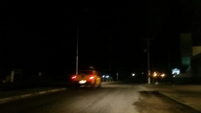 Já no Centro da cidade, em frente ao prédio da Prefeitura, uma nova sequência de postes desligados segue por alguns metros. São nove completamente às escuras e outros dois com uma das duas lâmpadas queimadas.
