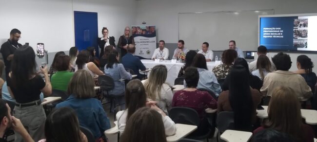 Abrindo as falas da noite, a diretora Laura apresentou brevemente o Acolher & Incluir Alvorada, fez a entrega simbólica dos novos equipamentos, falou dos recursos para qualificação dos profissionais que atuam no município, da valorização dos trabalhadores que buscam formação e, por sim, ressaltou o compromisso da Associação com a construção de uma educação pública mais inclusiva, acolhedora e de qualidade para todos. “Este programa vem para mudar a história da educação inclusiva”, afirmou.