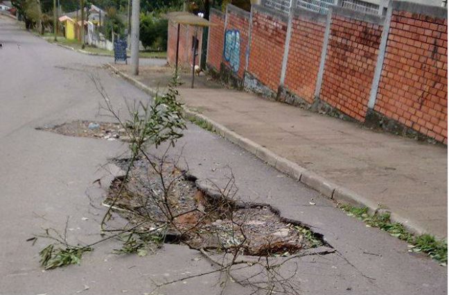Conforme os moradores, o conserto chegou a ser realizado pela Prefeitura, “mas foi tão mal feito, que durou apenas um mês e agora está ainda pior que antes, com boa parte do asfalto cedendo”, denuncia o morador Cristiano Caduri de Almeida.